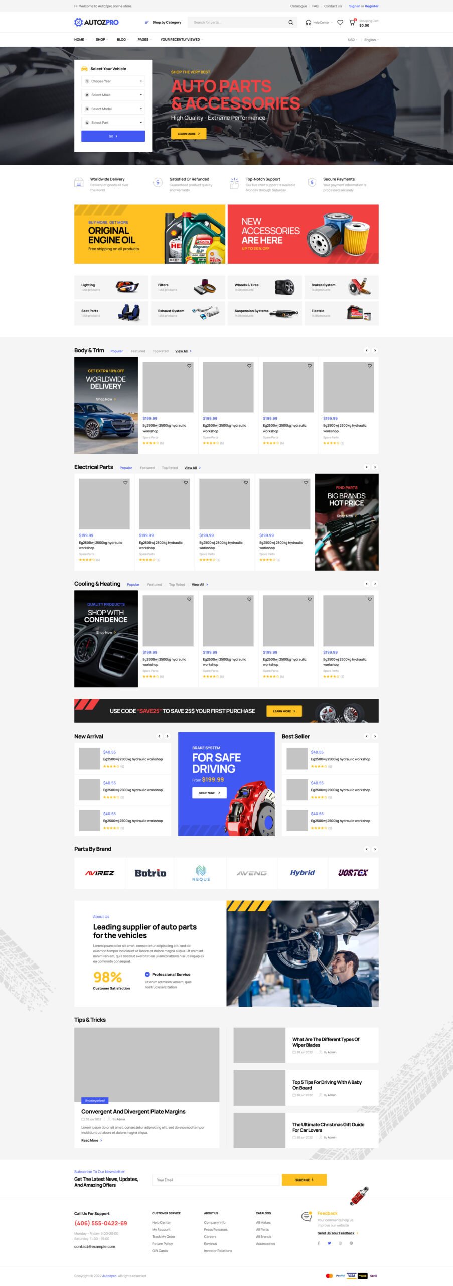 Autozpro Auto parts WordPress Theme, perfectly suitable for an auto parts, body parts, engine drivetrain, exhaust system, filter, headlights & lighting, auto parts, tires & wheels, brake kit, air filter chainsaw, motor oil level, spiked tires, generator platinum, twin exhaust pipe from brandix, ….