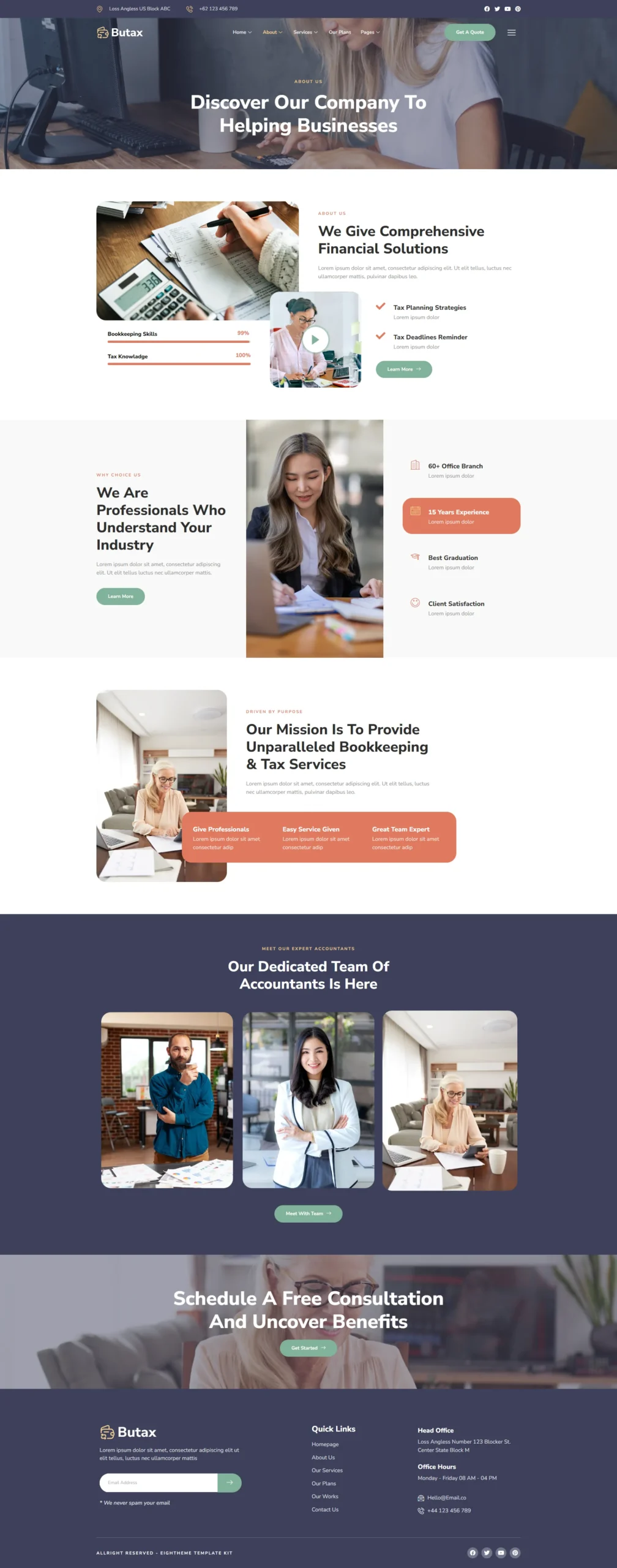 Butax – Tax Service & Financial Advisor Elementor Template Kit is a collection of layouts for the Elementor page builder WordPress plugin, designed for use with Elementor Free Version for a clean Design. It works with most themes and is optimized for use with the free Hello Elementor theme.