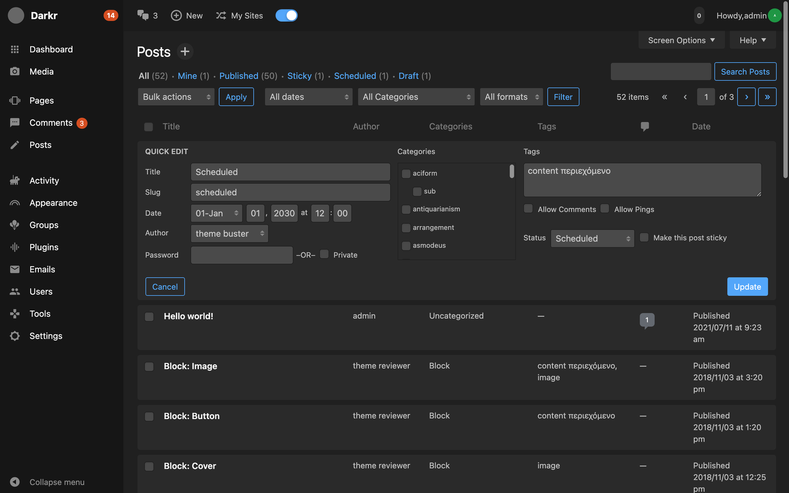 WordPress Light/Dark theme plugin which can change the appearance of the WordPress admin and login page. Itβs compatible with thousands of WordPress plugins by default. You can customize the dark mode background text and color as you want with the custom color feature.