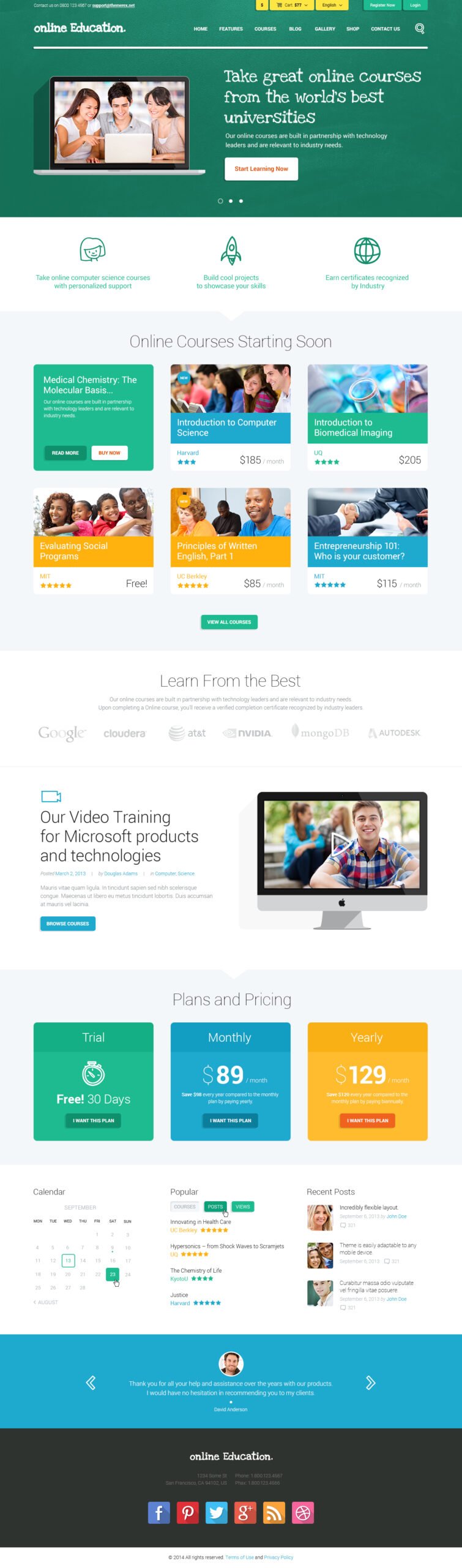 Educational Center – fresh & modern Education WordPress Theme. It is created for educational establishments both: online and offline. It works for: courses, preschool, primary school, secondary school, high and higher education. Also for college, university or academy, informal learning, institute.