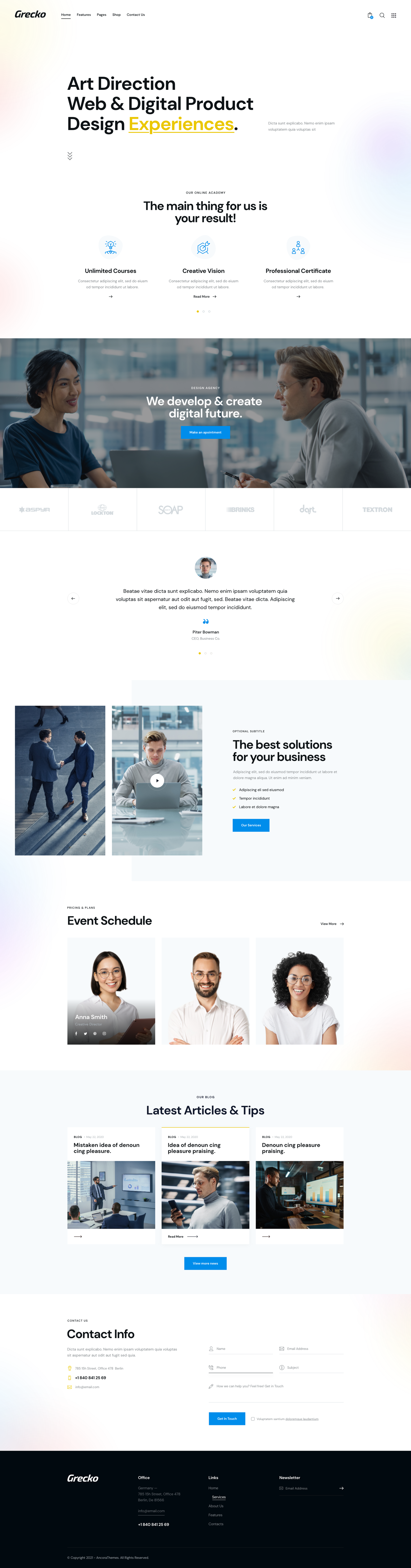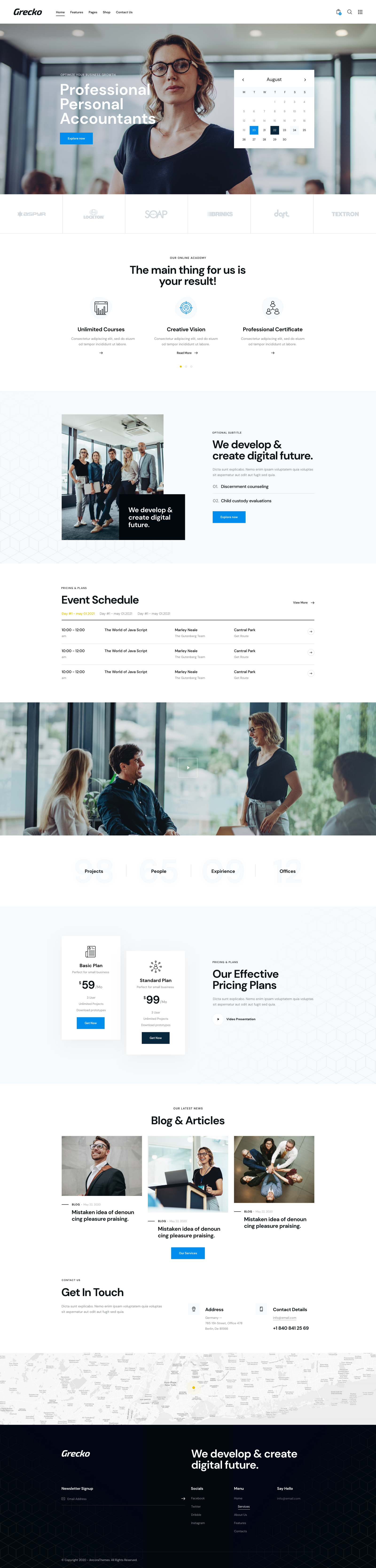 The theme gives you all possible options, design, and style features you and your business will ever need. Grecko is highly flexible and incredibly multipurpose, and has a unique structure, so that you will be able to easily build a beautifully looking website for your business.