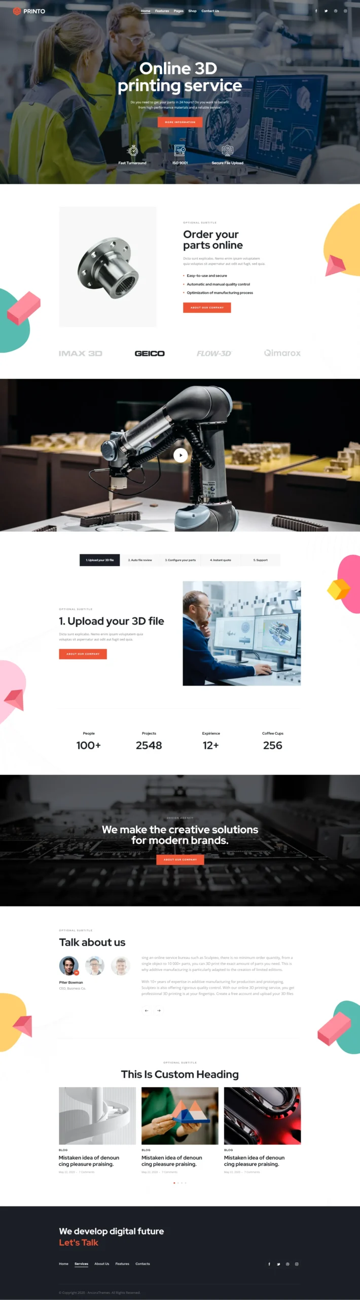 Printo is the elegant modern Printing Services WordPress Theme. Its stylish design especially fits printing and copying services, type design company, print shop, copy center, 3d printing agency. Also: typographies, newspaper, magazine firm, graphic design studio and individual designers bureau.