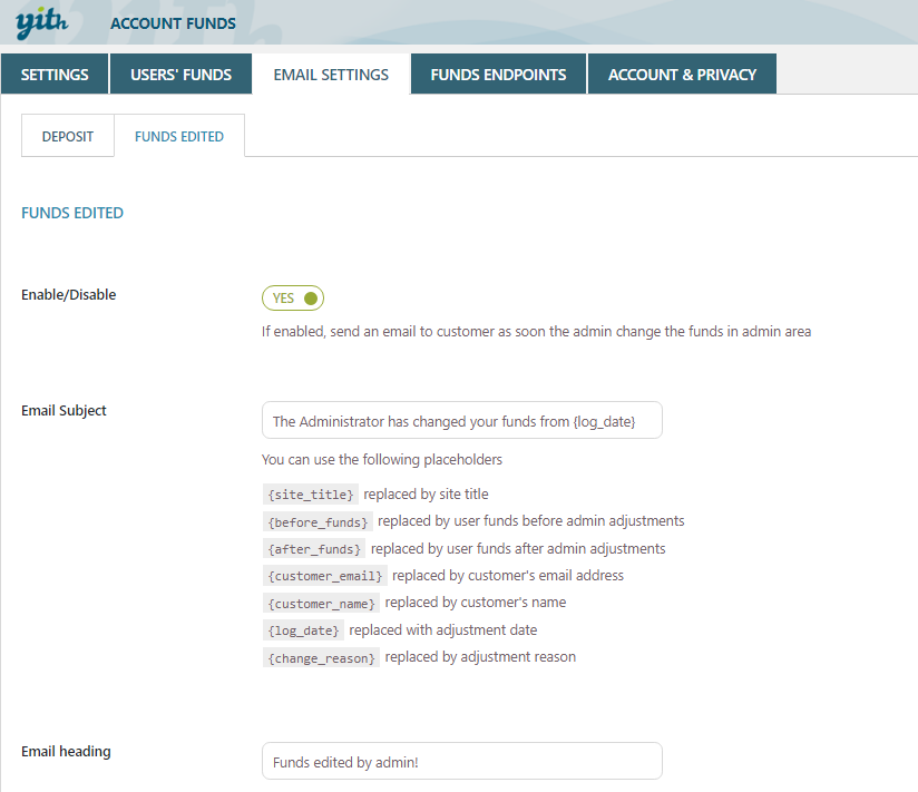 YITH WooCommerce Account Funds